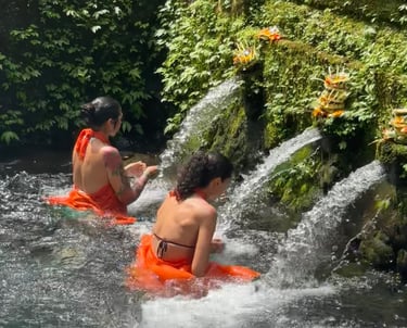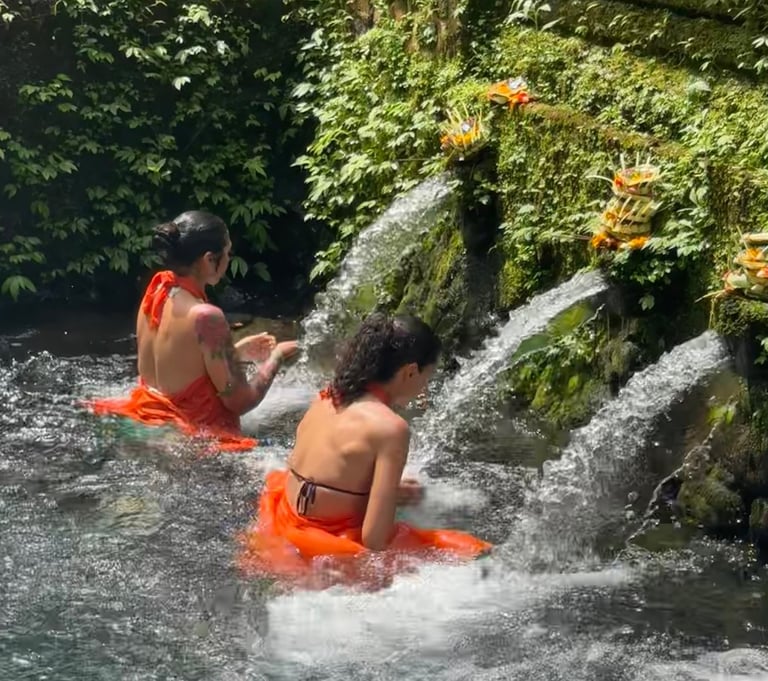 • Cérémonies traditionnelles de purification balinaise : immersion dans des rituels sacré à l’eau bénite, purification du corps, de l'âme et des énergies par des prêtres balinais, bénédictions et libération symbolique.